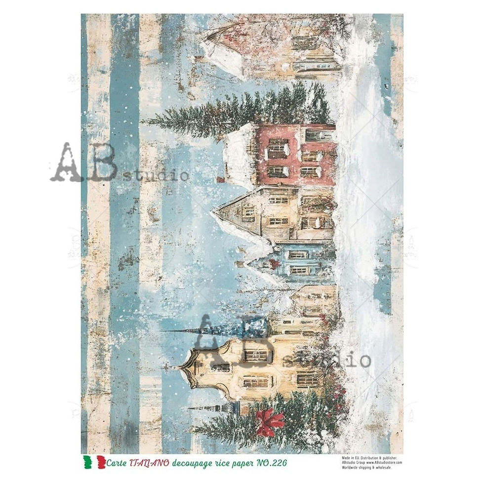 3274-A4 AB Studios Village Houses Scene Rice Paper